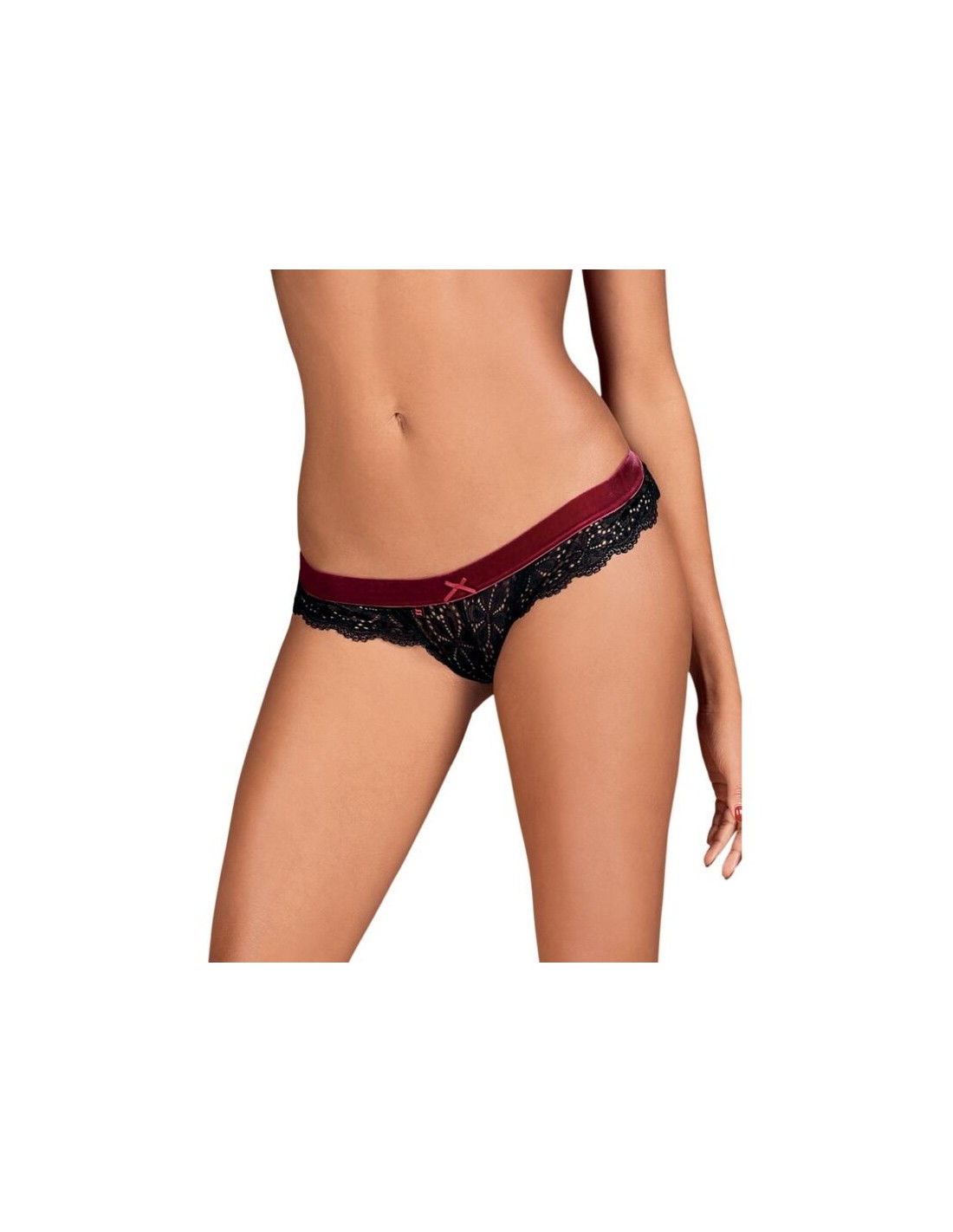 Delicado, agradable al tacto, pero también super sexy!. Así es el tanga Rossita que además consigue enfatizar tus caderas al máximo con la banda de terciopelo color burdeos.