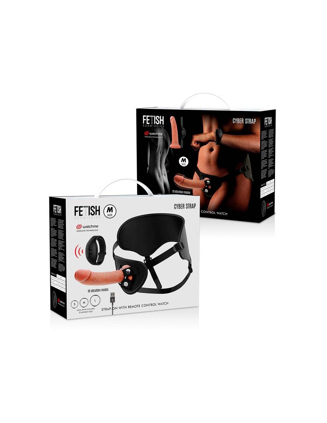 Aumenta las sensaciones con ester arnés con vibrador para disfrutar al máximo con tu pareja. Un arnés con un dildo realista con 10 modos distintos de vibración que puedes controlar desde el mando con forma de pulsera que incluye. El dildo también puede ser usado solo y en su base cuenta con ventosa. Dildo de 19,5 cm de longitud total.