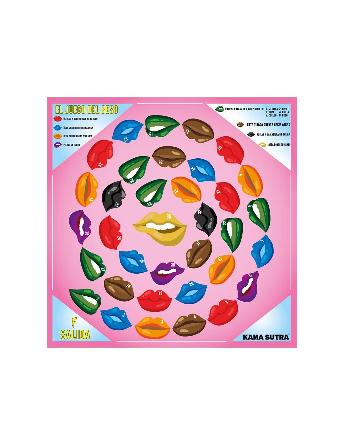 Es uno de los juegos de mesa más sencillos y divertidos. Cada labio numerado y de un color esconde una acción: volver a la casilla de salida, volver a tirar el dado y besar en función del número que sale... Y así hasta llegar al final, donde el ganador llega a la casilla de "¡Besa donde quieras!". Y todo esto aderezado con algunos objetos para hacer aún más interesante el juego.