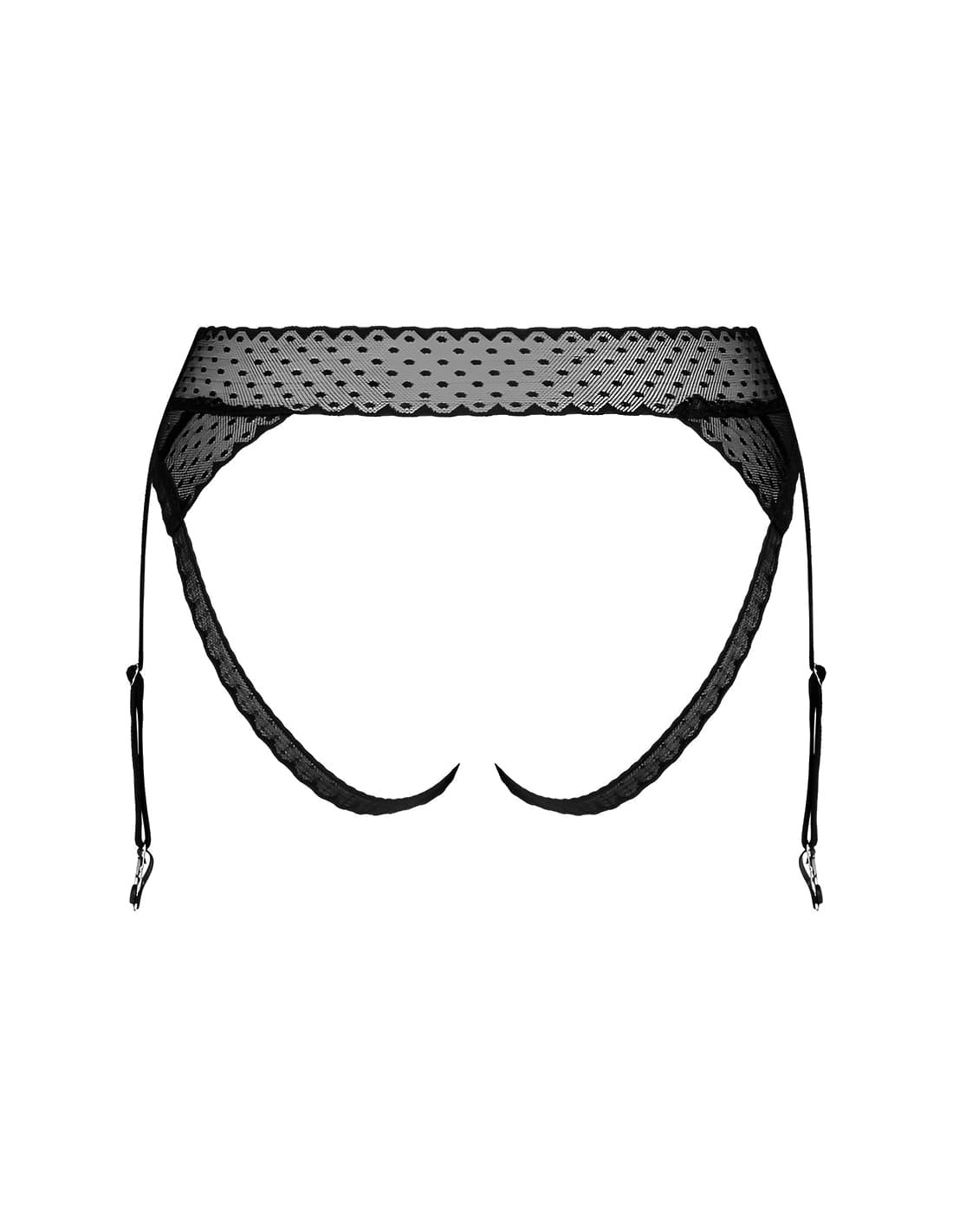 Con este increíble modelo de braguita con liguero Lanelia, nunca más tendrás que conformarte con "sólo lo básico". Una pieza para lucir sexy a la moda a la vez. Sin duda es perfecta para conseguir subir la temperatura con tu pareja. Su ribeteado de encaje le aporta un toque muy elegante y sensual. Entrepierna abierta.