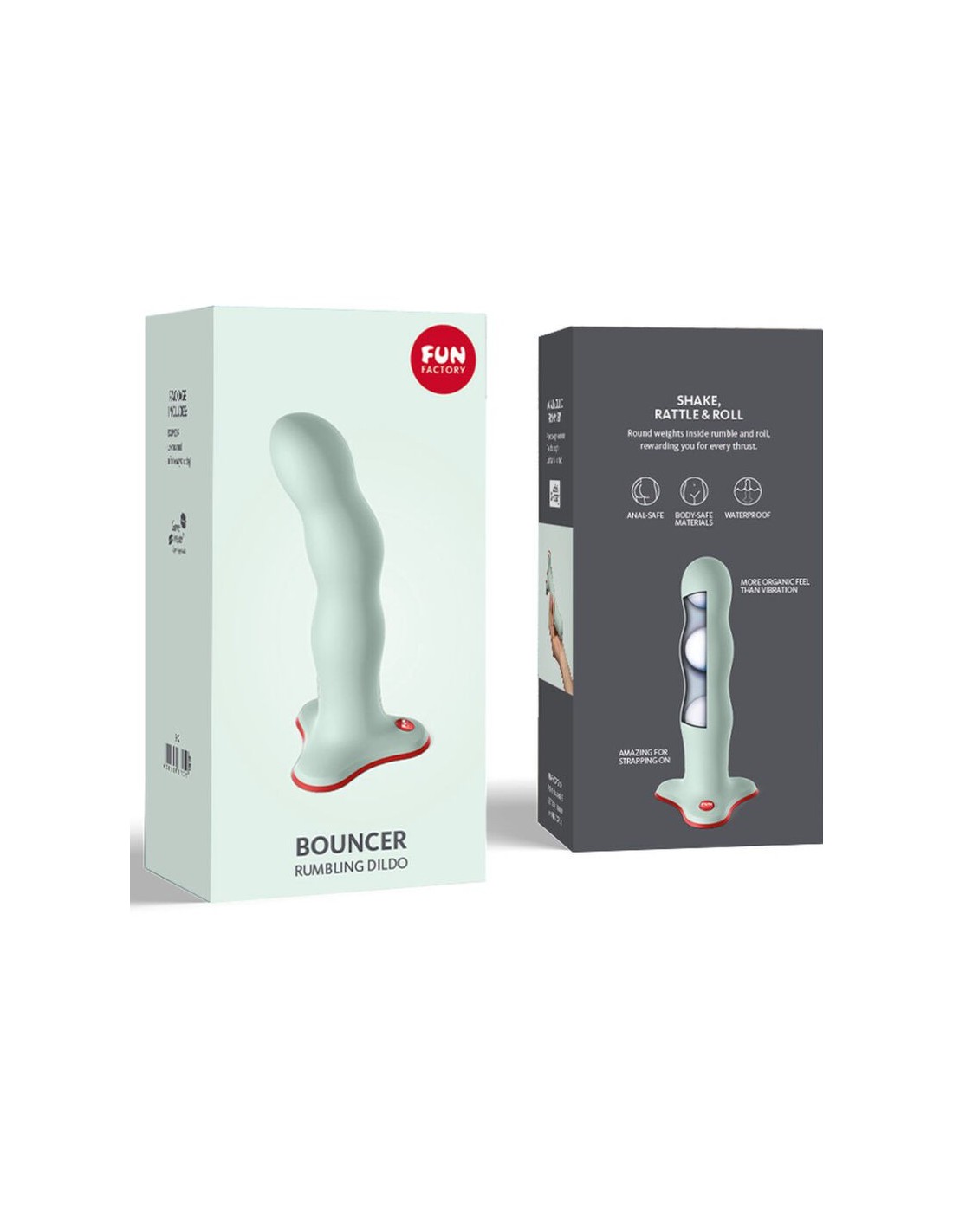 Consolador con ventosa Bouncer de la marca Alemana Fun Factory. Es firme y flexible con tres bolas internas para estimulación única. Ideal para juegos en solitario o en pareja. Fabricando en material suave y seguro y 100% impermeable para una experiencia erótica, segura y placentera.
