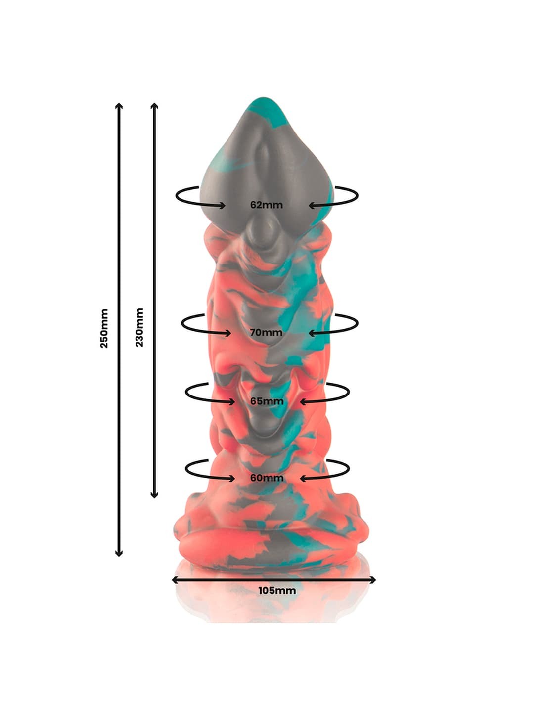 Phobos, el consolador gigante inspirado en la mitología griega, está diseñado para quienes buscan una experiencia intensa y envolvente. Con un glande de 6.2 cm y un engrosamiento superior de 7.0 cm, ofrece una estimulación profunda y precisa. Sus secciones permiten una penetración gradual y controlada, garantizando comodidad en cada uso. Fabricado en silicona de grado médico, es seguro, suave y fácil de limpiar.